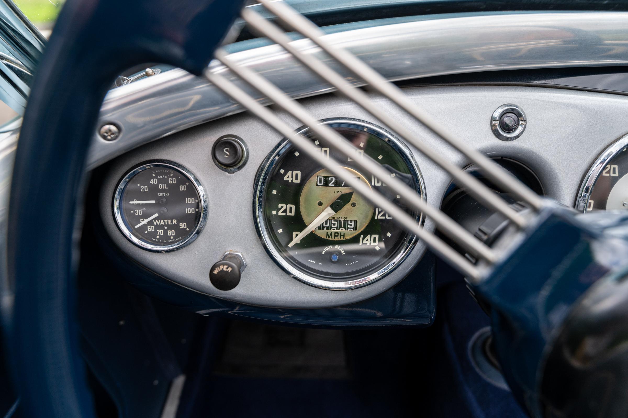 Le petit tableau de bord présente un reflet terne, tandis que les instruments chromés sont bien brillants sans être trop brillants. Les chiffres et les aiguilles des cadrans Smiths sont élégants et propres, et les instruments eux-mêmes sont bien placés dans leur support.