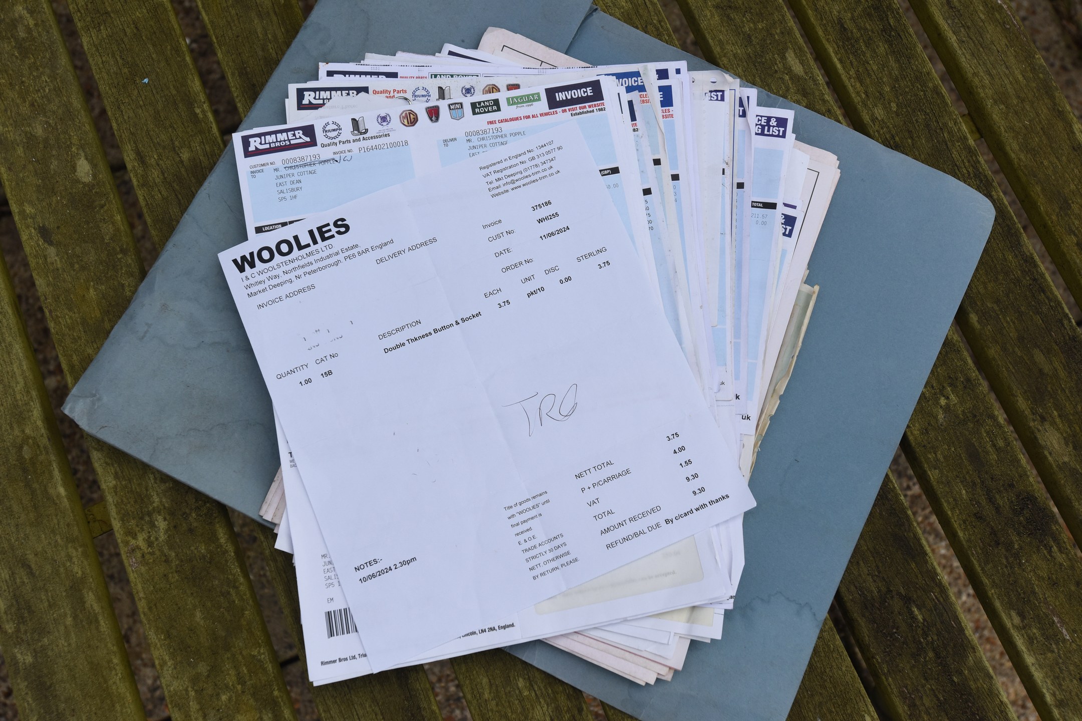 - Nombreuses factures de pièces détachées de Rimmerss, dont 2 724 £ pour la seule année 2007