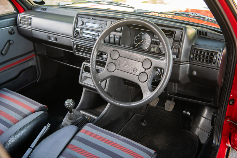Cette superbe Golf GTi de 1985 a fait l'objet d'une restauration de deux ans sans aucune dépense, au cours de laquelle la voiture a été entièrement déshabillée, y compris le dessous. Après la carrosserie, quelques couches de rouge Mars d'usine ont été appliquées. De nombreuses pièces d'origine ont été utilisées ou remises à neuf pour amener la Golf GTi Mk2 dans l'état fantastique que vous voyez ici.