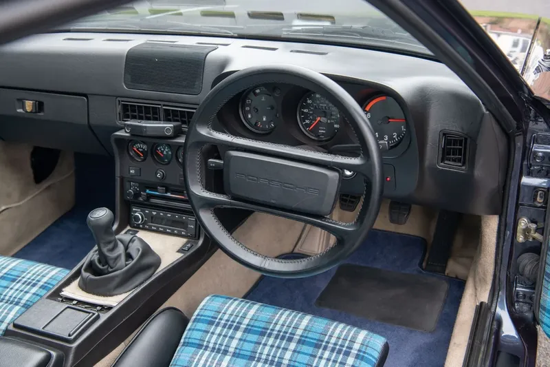 Cet exemplaire de 1988, fini en Nautic Blue, a été restauré en profondeur au cours des cinq dernières années sous la houlette de deux membres dévoués du Porsche 924 Owners Club. Le précédent propriétaire, feu Barrie Evans, a remporté le titre « Best S » avec la voiture lors d’un événement du club, et le propriétaire actuel, président du club, a continué d’y apporter une attention considérable. La carrosserie a été entièrement repeinte dans sa couleur d’origine et la voiture a été traitée contre la corrosion par des professionnels. À l’intérieur, l’habitacle a été entièrement rééquipé en tissu Madras Blue 911 avec des sièges sport Porsche, offrant un intérieur bien coordonné.