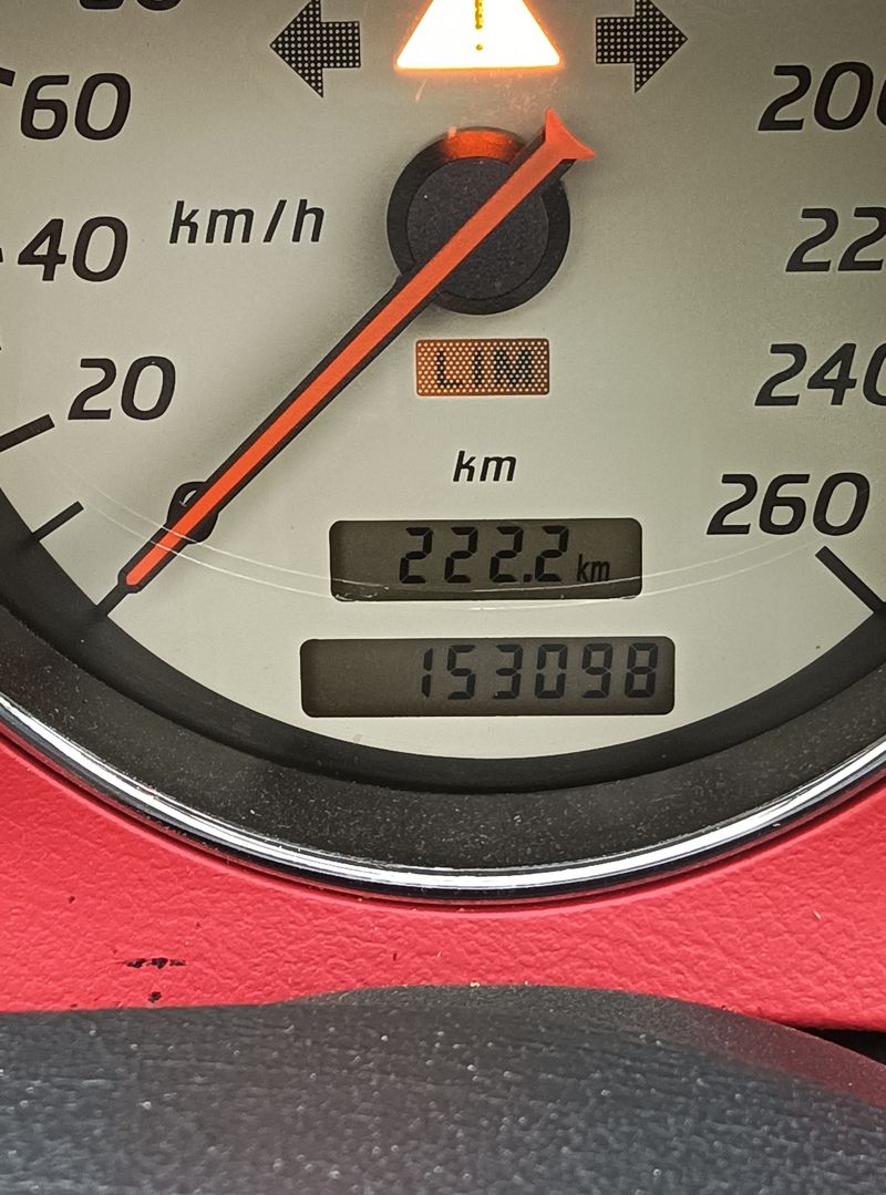 - Sièges en rouge et noir avec surpiqûres rouges avec une légère usure aux endroits les plus fréquentés