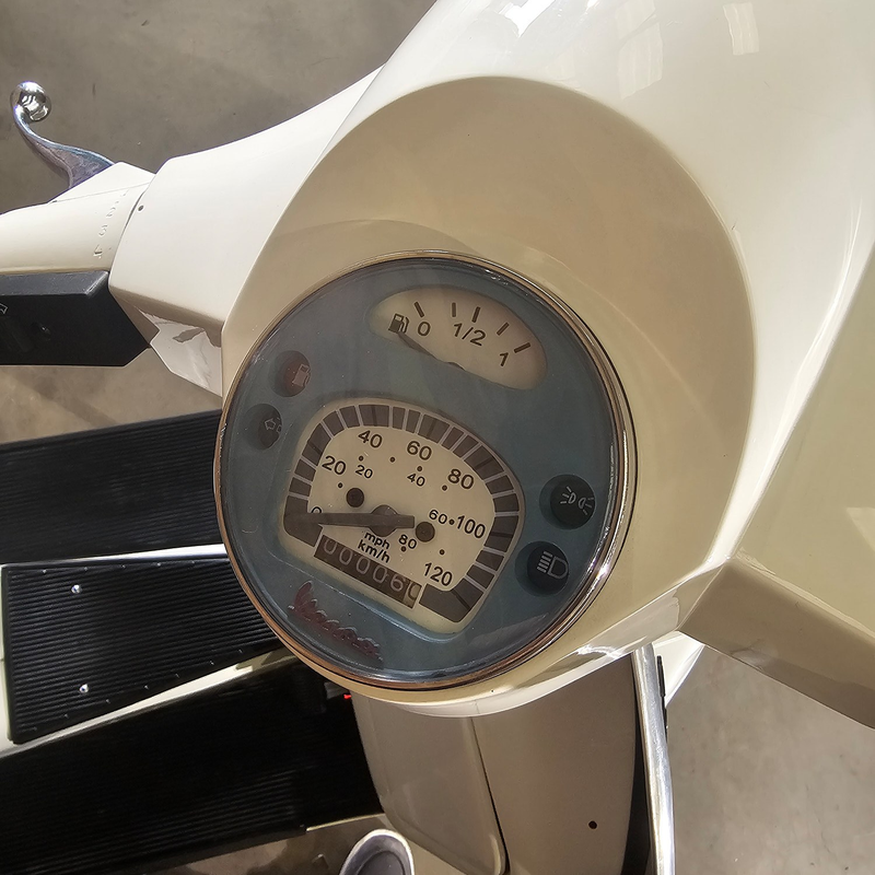 • Conçu sur le même modèle que l’emblématique Vespa PX150E, avec le phare rond inimitable, des courbes rétro et une boîte de vitesses manuelle à quatre rapports à poignée twist