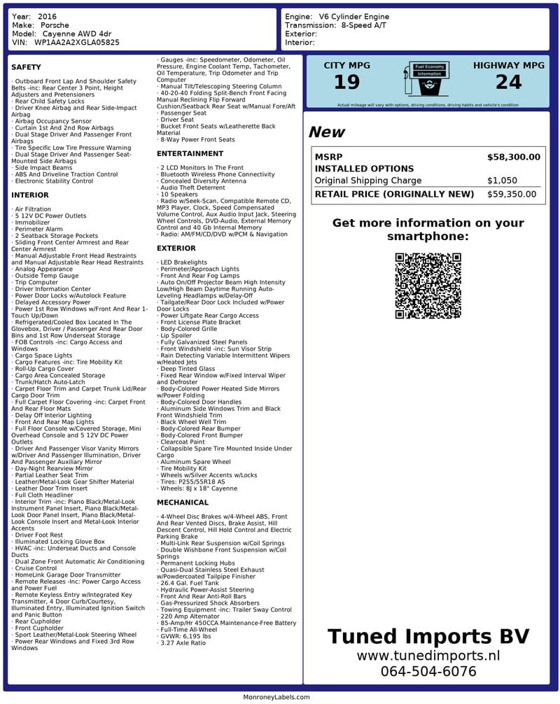 - Porsche Cayenne 2016 immatriculée aux États‑Unis avec documentation d’importation néerlandaise