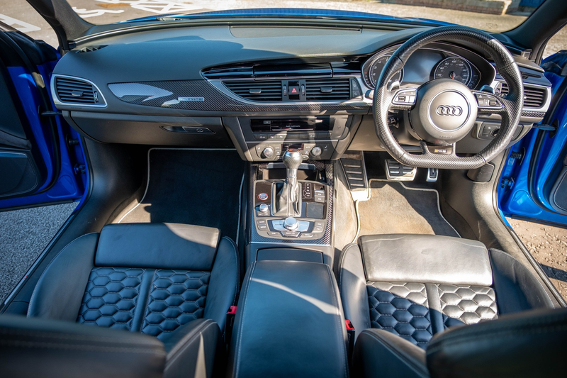 Cette RS6 est habillée du célèbre Ara Blue, une couleur plus rare sur cette époque d'Audi, étant une option d'usine de £1500, la plupart étant blanche ou noire. Cette superbe peinture est complétée par des jantes Riviera noires brillantes qui, à notre avis, conviennent parfaitement à la voiture.