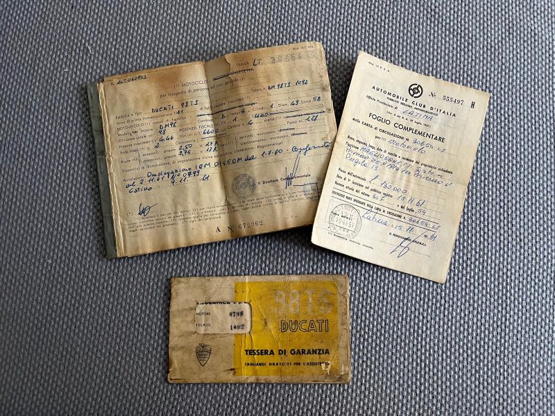 Complet avec le rarissime livret de garantie Ducati d'origine, incluant les bons pour des services gratuits à partir de 1961.