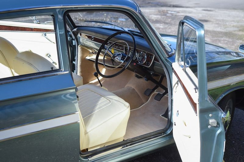 Cet exemplaire a été immatriculé neuf en 1963 et se présente dans une teinte Vert avec intérieur cuir Crème. Il a fait l’objet d’une restauration complète par les spécialistes respectés Heritage Classics of Teesside, avec un coût supposé supérieur à 40 000 £. Une plaque dorée sous le capot porte le nom du restaurateur, et le vendeur affirme que chaque composant, mécanique comme esthétique, a été remis à neuf selon des normes très élevées. Un registre photographique documentant la restauration accompagne la voiture. Depuis son achèvement, elle a été conservée dans une collection privée et dans un cadre muséal avec une utilisation très limitée, et le vendeur indique qu’elle se présente très bien à l’intérieur comme à l’extérieur.
