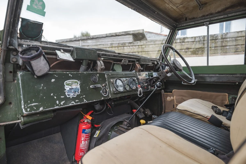 This Series IIA began life in the British Armed Forces, but following demobilisation in 1970, it was acquired by Benetton Racing, who made several significant upgrades, including the fitting of a 2.5L 17H petrol engine and Series III gearbox. There's also a one-piece windscreen with three wipers, and additional headlamps fitted to the front wings.