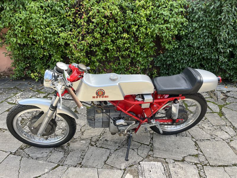 Cet exemplaire est un Imperiali Sports Special, appelé ainsi car il a été reconstruit et réglé comme une moto de compétition par le célèbre préparateur romain Augusto Imperiali. Les motos monocylindres Benelli/Motobi préparées par cet atelier légendaire ont connu un grand succès en compétition dans les années 1960 et ont acquis une réputation considérable, notamment pour leur look fantastique !