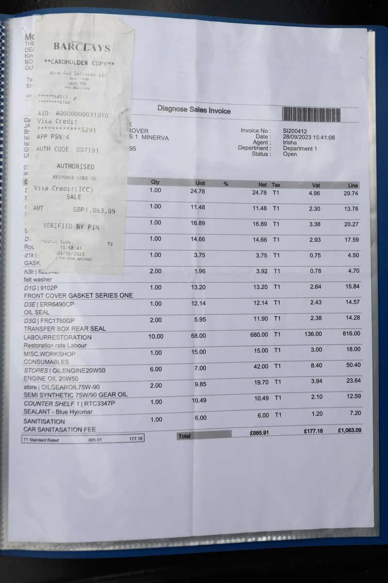 - 1.083 sterline di manutenzione meccanica e altri lavori nel settembre 2023.