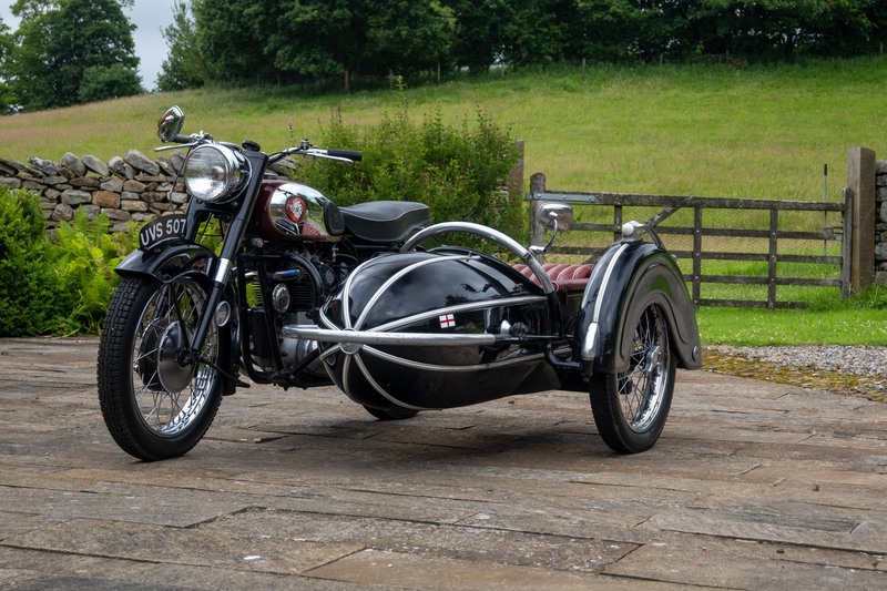 Questa Golden Flash del 1958 è abbinata al ricercatissimo sidecar Steib modello S 501, creando una combinazione straordinaria che, a quanto si dice (e in effetti è comprensibile), fa girare la testa ovunque vada. Presentata in una splendida colorazione nera abbinata e con appena 9.782 miglia, questa combinazione si presenta splendidamente, con dettagli impressionanti sia sulla moto che sul sidecar.