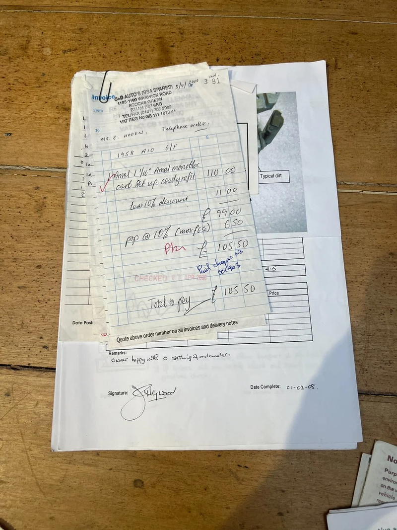 "Ho acquistato la moto 4 anni fa da un rivenditore locale specializzato in moto inglesi ed è stata fornita con un servizio completo. È stata regolarmente avviata ed è stata messa in moto in occasione del servizio fotografico del luglio 2025 (vedi video). Utile archivio storico che include vecchi certificati di revisione risalenti a 27 anni fa, dischi fiscali e lavori di manutenzione/ristrutturazione, tra cui nuova frizione, rifacimento dei carburanti, fasce elastiche, bielle, seguipersona, ganasce dei freni, nuovi cavi, rifacimento e calibrazione del tachimetro, rifacimento della dinamo ecc."