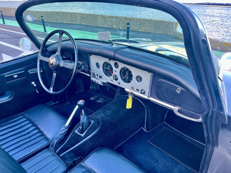 All’interno, l’abitacolo in pelle nera è stato recentemente ristrutturato, ma in modo sensibile. I sedili sono stati rinnovati usando la pelle originale, ma altri elementi riflessi. È una combinazione che funziona bene e conferisce a questa auto una certa dose di carattere storico.