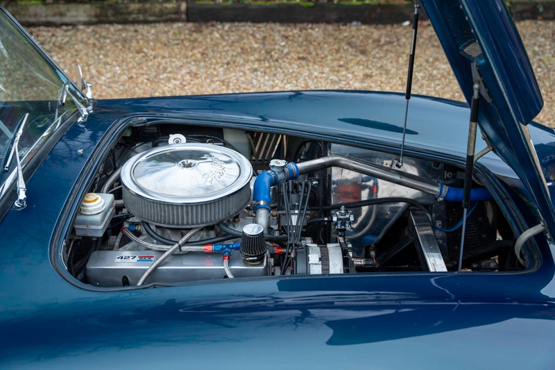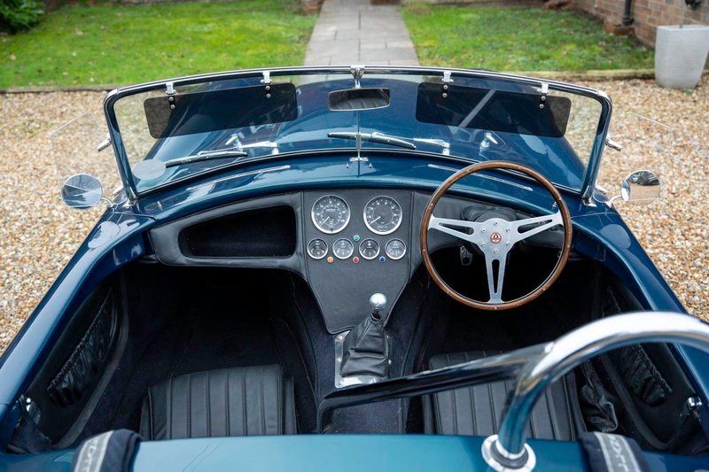 Oltre al kit e alle specifiche, ciò che eleva ogni Cobra è l’attenzione ai dettagli. La vernice metallizzata blu scuro di questa auto è una delizia, esaltando il lavoro cromato - inclusi gli scarichi laterali a uscita laterale - e cambiando colore a seconda della luce. Come gli interni ben dettagliati, con i classici quadranti, cinture Willans, sedili da bucket e volante cerchi in legno, è tutto in ottime condizioni.