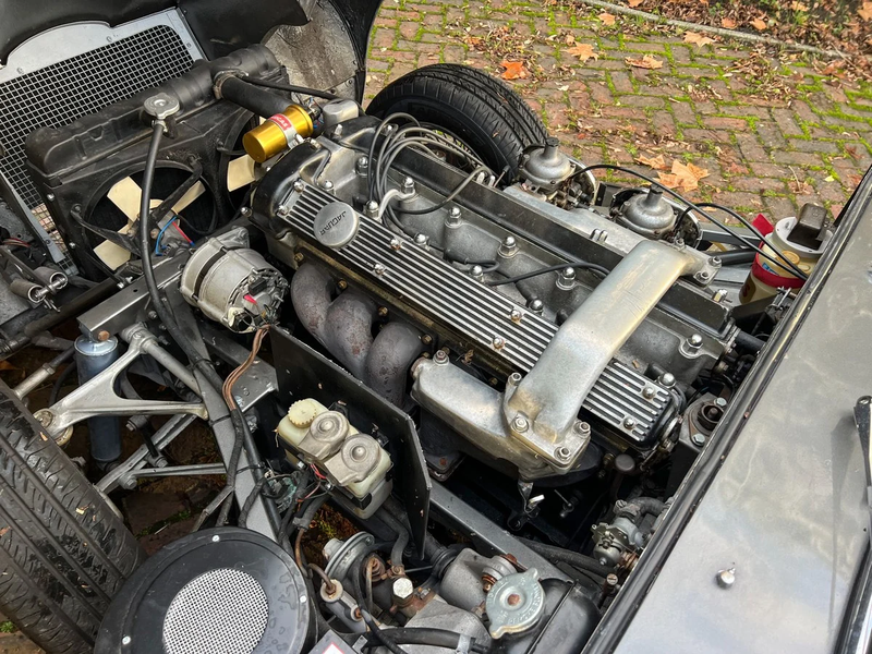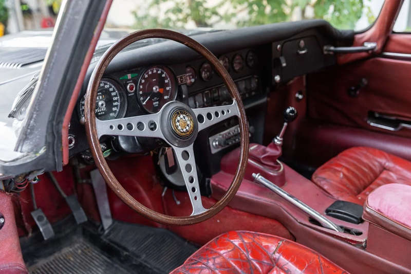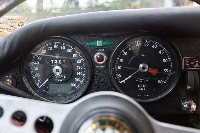 La vettura è generalmente ben presentata con allineamento pannelli soddisfacente, una verifica chiave su tali auto. L’interno evocativo mantiene un carattere marcato di patina e presenta un volante in stile E-Type con cerchio in legno autentico.
