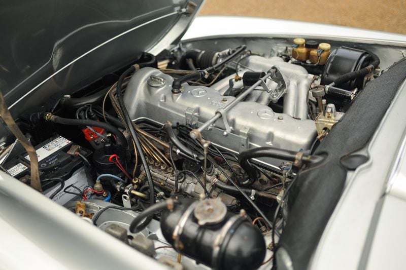 Con il suo kilometraggio modesto e una storia di manutenzione rassicurante, insieme alla reputazione della W113 per longevità e affidabilità, l’auto dovrebbe offrire molti altri anni di motoring senza problemi. Aprendo il cofano è nuovamente difficile credere all’età e al chilometraggio dell’auto. Il motore sembra genuinamente originale senza l’effetto cromature superficiali che vediamo spesso nelle auto restaurate di questi tempi. A parte una batteria moderna, tutto sembra come dovrebbe essere di nuovo. OUL_7002 Luke Papworth.jpg 10.67 MB