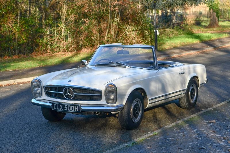 Questa 280 SL ha vissuto una vita davvero interessante. Registrata per la prima volta in Cheshire ad aprile del 1970, è stata esportata a Jersey per una nuova vita nel 1973, e lì è rimasta fino a poco tempo fa. È appena tornata nel Regno Unito e nelle nostre foto monta la targa originale emessa nel 1970 in UK. C’è una lettera di datazione dalla Mercedes-Benz nel fascicolo storico, che conferma che è stata costruita nel dicembre 1968 – e parlando del fascicolo storico, è davvero una lettura notevole.