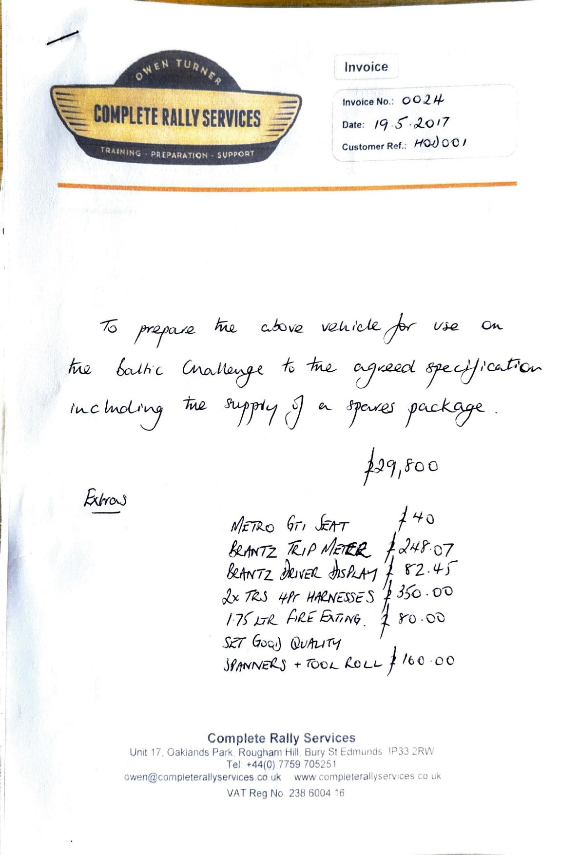 - Fattura più vecchia per la ricostruzione del motore e della scatola del cambio del 2010 da Top Garage, Herefordshire