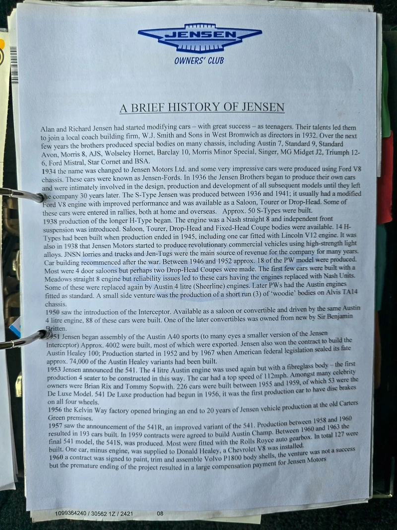 - Originariamente un veicolo PR Jensen utilizzato a fiere motoristiche ed eventi promozionali per l'azienda