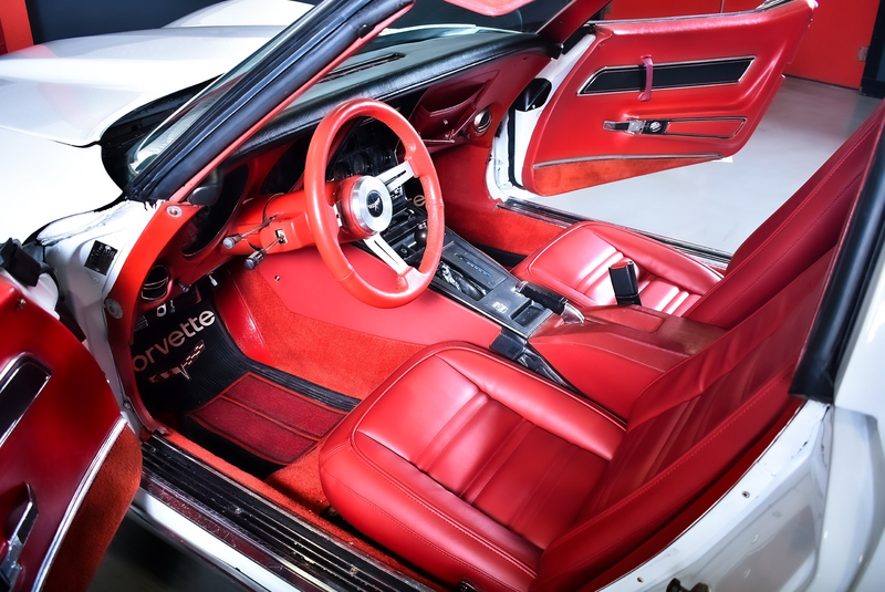 Questo particolare esemplare si presenta in un elegante esterno 59L Frost Beige abbinato a interni in pelle Light Doeskin (592), creando una sofisticata estetica d'epoca. Ciò che marca questa Corvette è il suo motore V8 350CI con numero di targa corrispondente, le condizioni ben conservate e la documentazione completa per l'importazione con tutti i dazi e l'IVA già pagati per la proprietà europea. La combinazione di caratteristiche originali, tra cui i cerchi di fabbrica con bordi cromati e pneumatici bianchi corretti per l'epoca, marca questo esempio interessante per i collezionisti e gli appassionati.