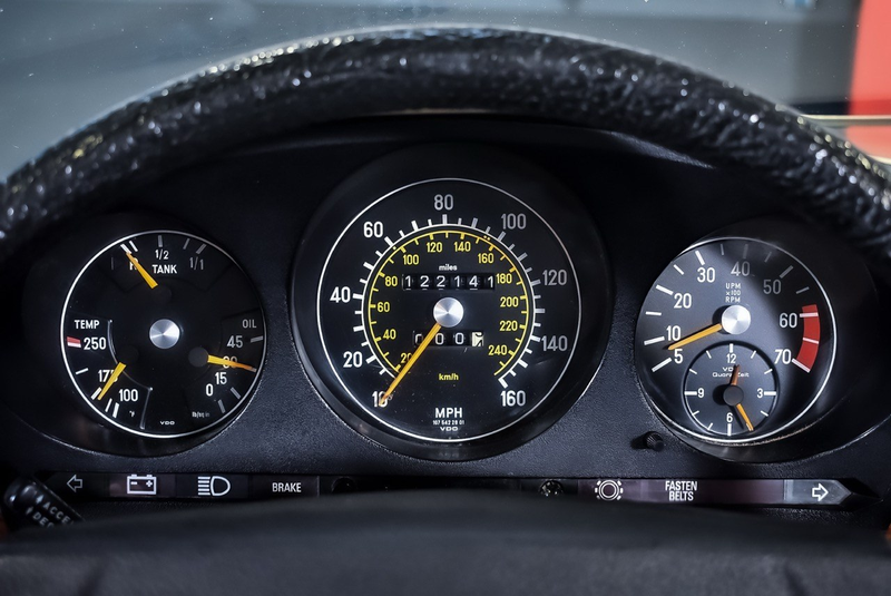 Questa vettura per il mercato USA aggiunge al suo fascino il V8 4,5L M117 da 225 CV. È in buono stato e con poche miglia per l'anno, il che la rende perfetta per un viaggio in Europa.