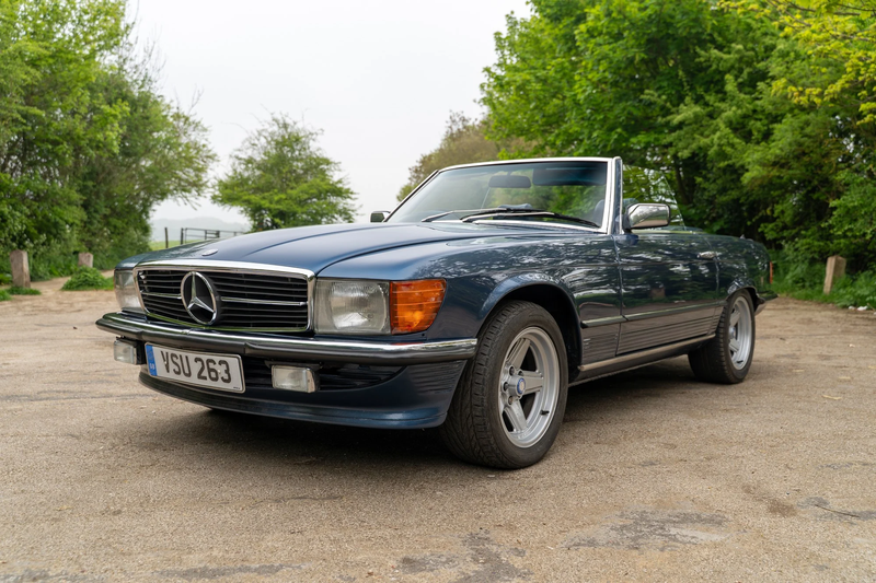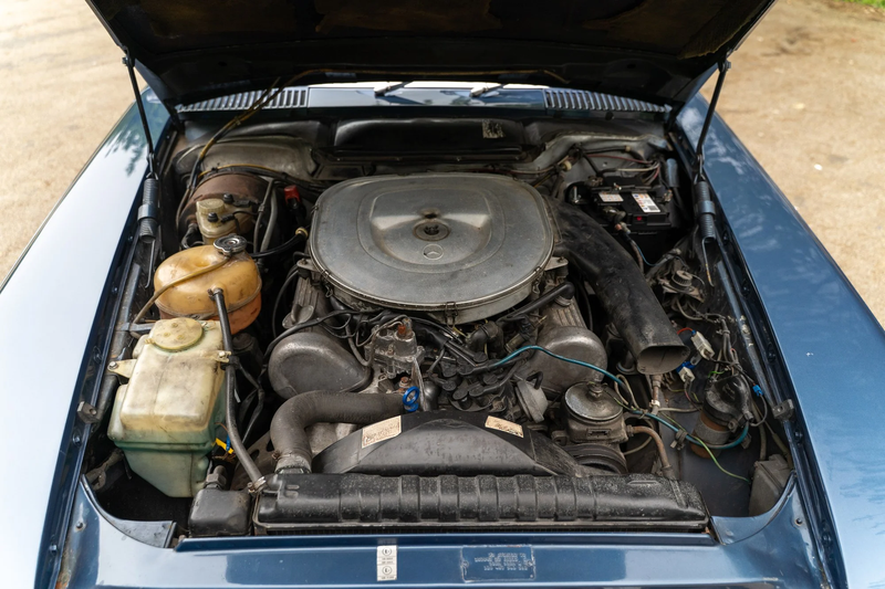 Al di là dei cerchi, questa è una R107 molto ben tenuta. L'attuale proprietario l'ha acquistata nel 2007 e la sta vendendo solo a malincuore a causa di un cambiamento di circostanze. Ha mantenuto un chilometraggio basso per l'anno e ha accumulato un'impressionante cartella di manutenzione continua. I punti salienti includono una riverniciatura completa nel colore originale nel 2021. Sono stati sostituiti la pompa dell'acqua, il termostato e l'alloggiamento, le cinghie delle ventole, l'impianto di scarico dai collettori e la valvola ausiliaria dell'aria.