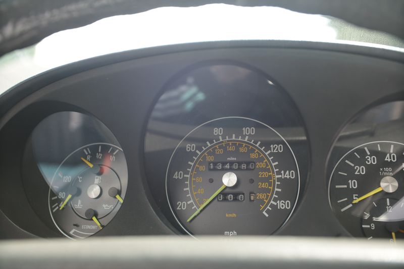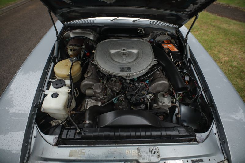 Si tratta di un esempio ordinato di R107 con motore V8 e di un esemplare in cui è possibile trarre vantaggio da tutti i lavori effettuati di recente. Il tutto con l'aggiunta di leghe Mexican Hat.