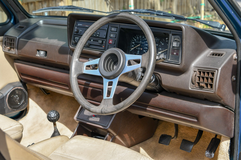 Questa Golf GTI Cabrio, utilizzata solo nei fine settimana estivi e conservata in garage con un telo di tessuto quando non viene utilizzata, è particolarmente bella. La livrea blu metallizzato e la capote beige si adattano perfettamente all'auto, che appare molto originale sia all'interno che all'esterno.