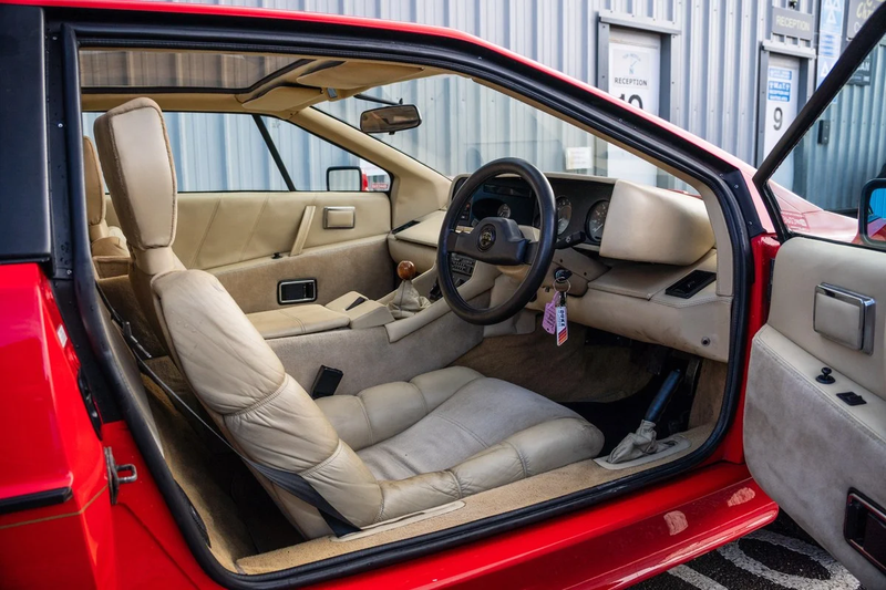 Rifinito in rosso d'epoca con cerchi BBS dorati e abitacolo in pelle e camoscio beige, è un esemplare originale e molto ben tenuto che ha percorso meno di 48.000 miglia da nuovo. Le condizioni sono impressionanti: l'abitacolo, solitamente fragile, mostra solo un leggero segno di usura, facilmente rimediabile. Altrove le decalcomanie, i paraurti in tinta con la carrozzeria e le minigonne laterali sono tutti leggermente invecchiati.