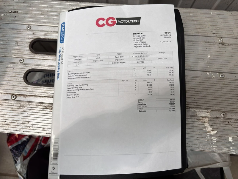 Il fascicolo storico è impressionante, soprattutto negli ultimi tempi. Nel 2019 la vettura si è recata dallo specialista Lotus Bell & Colvill per un nuovo volano. Più recentemente, nel 2023 e nel 2024, il precedente proprietario ha investito 9.000 sterline in lavori approfonditi. Tra questi, una nuova cinghia di distribuzione e interventi ai freni, alle sospensioni e ai sistemi di riscaldamento e raffreddamento. È stato effettuato anche un tagliando, da quando l'auto ha percorso poche miglia.