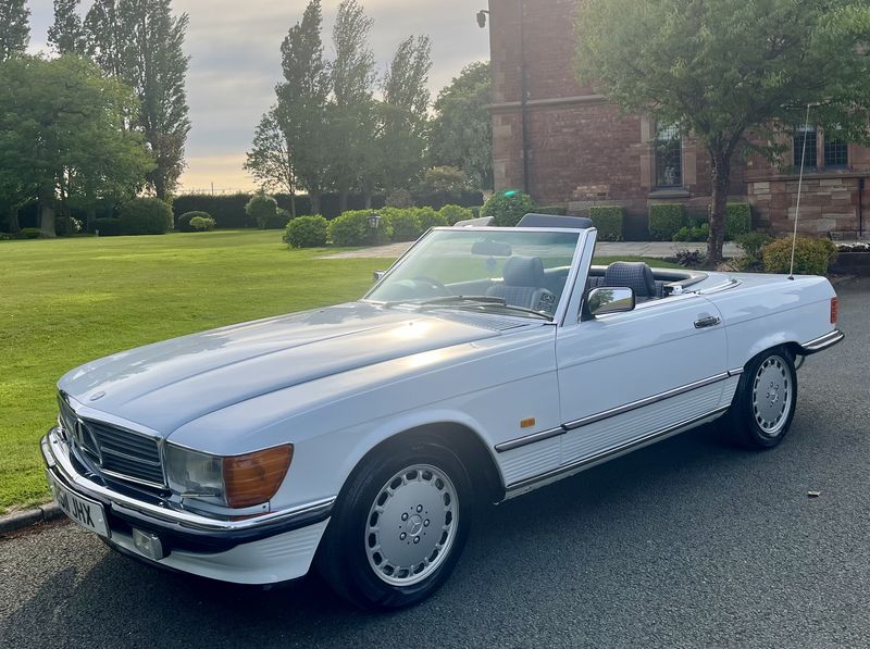 Fornito originariamente da Mercedes-Benz Mayfair nell'agosto del 1986, questo esemplare di colore bianco artico conserva gli interni blu sport check, corretti in fabbrica, e la capote in mohair blu abbinata. L'auto è stata sottoposta a un accurato restauro che ha incluso riparazioni strutturali, una riverniciatura completa e una revisione meccanica. Con il suo certificato di revisione gratuito fino al 2026, sappiamo che è pronta e in attesa di partire.