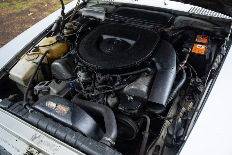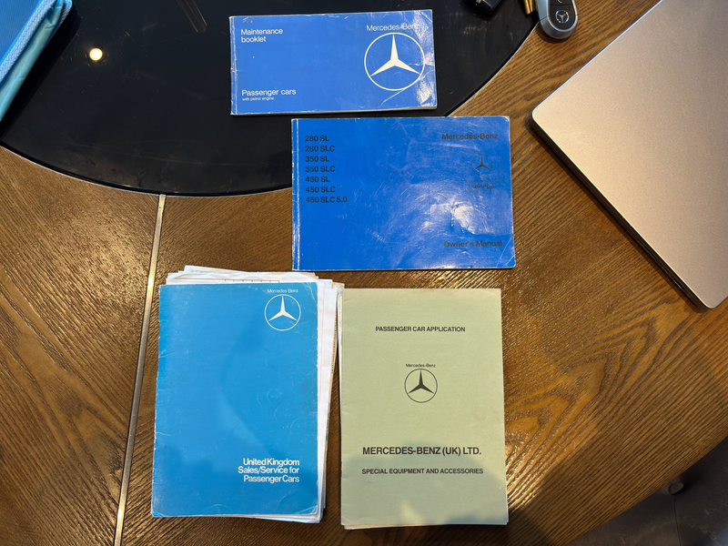 Questo particolare esemplare del 1988 presenta l'intramontabile livrea argentata artica con interni neri, completata da un hard top abbinato (recentemente riverniciato) e da un soft top Navy. Con una documentazione di servizio completa e un chilometraggio notevolmente basso, questa R107 sembra essere stata mantenuta con cura e sarà una favolosa aggiunta al vostro parco auto d'epoca.