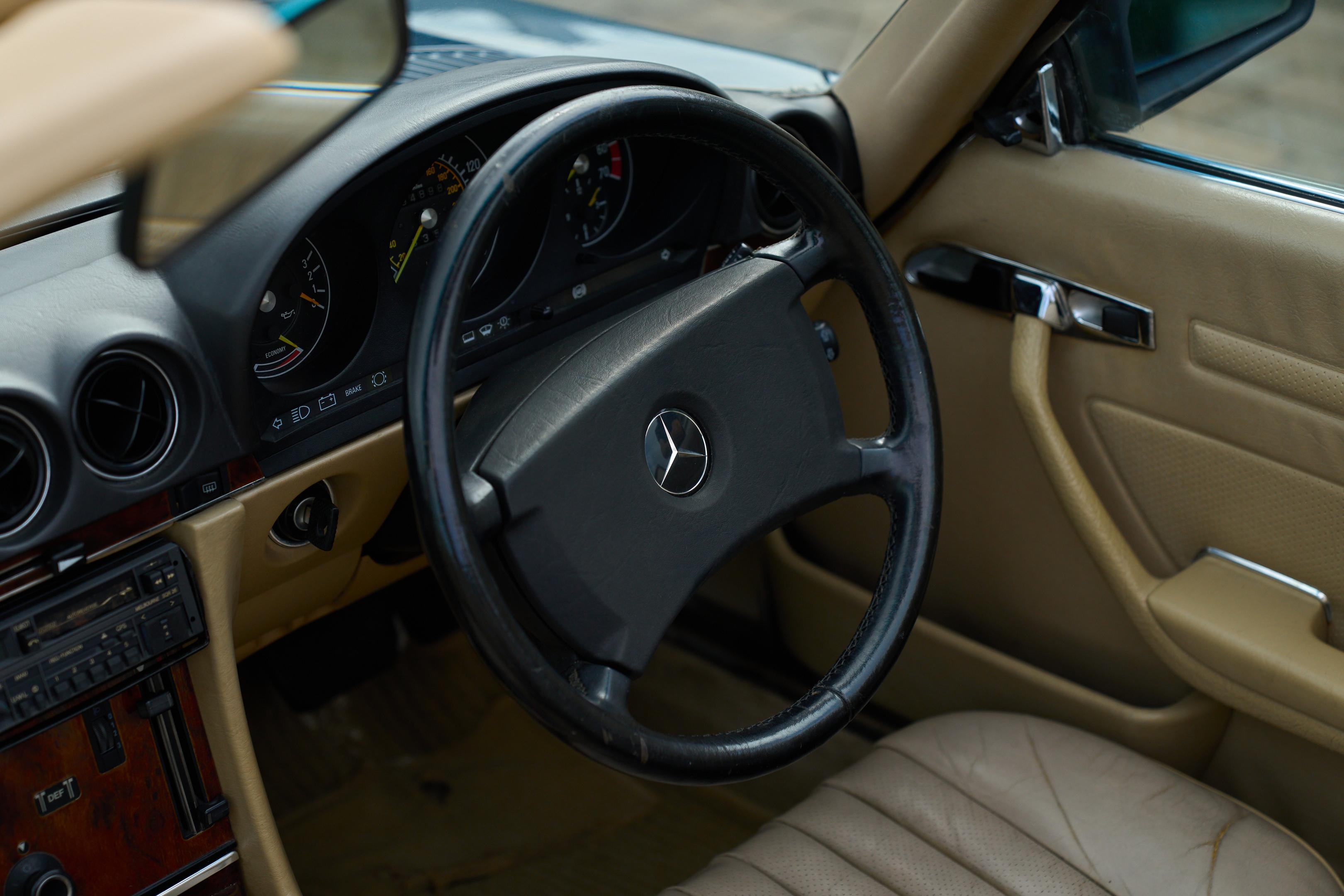 Avviata con un semplice giro di chiave e desiderosa di mettersi in viaggio, questa 500SL sembra un'ottima candidata per chi è alla ricerca di un'affidabile e lussuosa d'epoca con qualche possibilità di fare la propria marca.