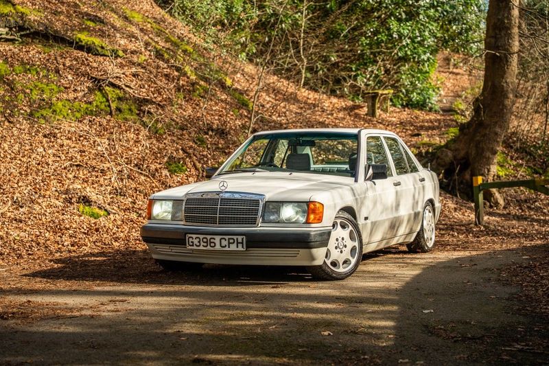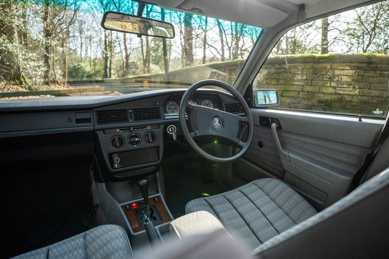 Questo 190 Arctic White lasciò lo stabilimento a settembre 1989 ed è equipaggiato con il motore a carburatore M102 da 2 litri 4 cilindri da 105 CV e cambio automatico a 4 marce 4G-TRONIC. La vernice si presenta bene, si dice originale. All'interno, l'interno grigio scozzese resistente sembra appena uscito dalla showroom. Tutto ciò è una testimonianza di quegli ingegneri di Stoccarda diligenti. L'auto resta meccanicamente originale di fabbrica, e esteriormente, le uniche modifiche sono un set di cerchi R129 da 16 pollici e un kit ribassante H&R da 60 mm.
