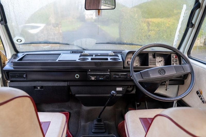 Questo T25 del 1990, tenuto molto bene, è una conversione Factory Autohaus Komet con tetto alto Holdsworth. A differenza di molti esemplari della sua epoca, è un pezzo estremamente conservato che si presta bene a definirsi come un “viaggio nel tempo”. La condizione è notevole per un furgone di 36 anni e mantiene molte caratteristiche originali.