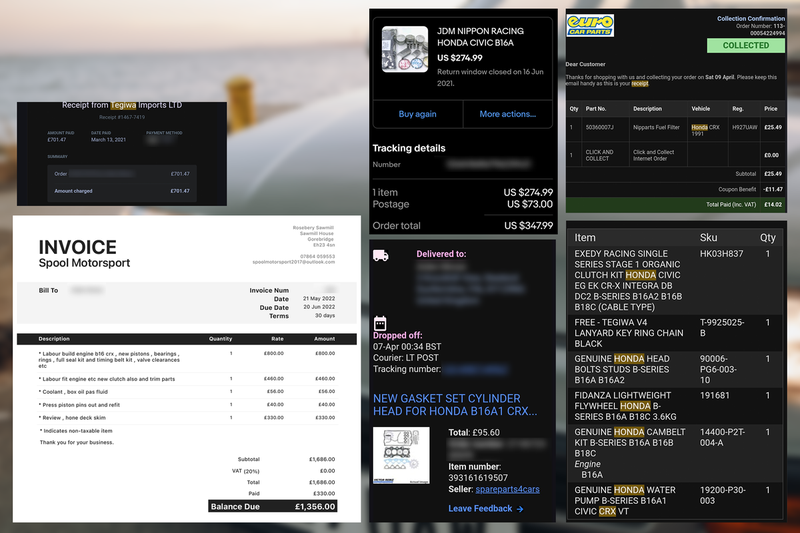 “Il motore è un B16A. È stato completamente ricostruito a causa di una diagnosi errata. È stato completamente ricostruito da Spool Motor Sport che si occupa di motori JDM.”