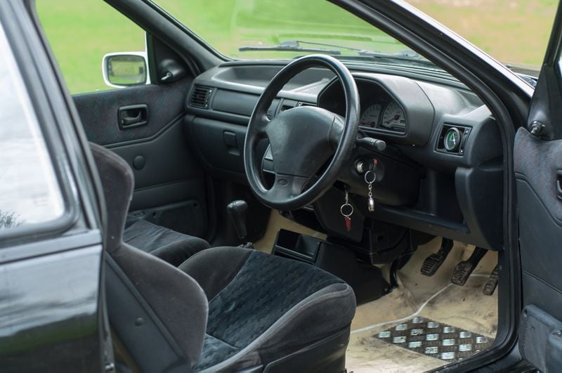 La storia qui è familiare agli appassionati di Ford: la RS Turbo del venditore aveva una meccanica sana ma una carrozzeria compromessa dalla ruggine, quindi nel 2015 è stata trovata una carrozzeria sostitutiva solida e la meccanica RS Turbo è stata trasferita. Dopo una pausa di diversi anni in archivio, il progetto è stato portato in officina nel 2024 e completato nel febbraio 2026, superando l’MOT senza avvisi. Il motore 1.6 CVH turbo è stato ricondizionato nel 2018 e presenta una specifica che include Kent Cams, testata lucidata e portata, e un turbo ibrido T3 Garrett costruito su misura.