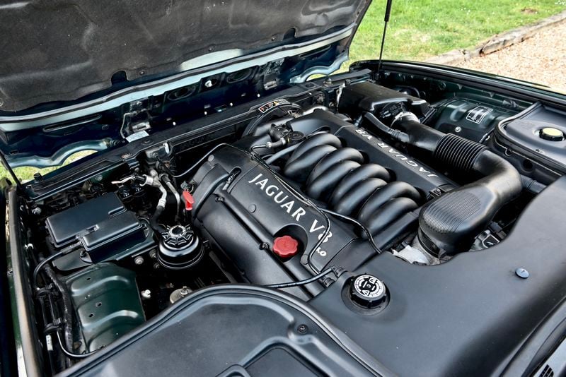 I modelli "Sovereign" offrivano le più alte rifiniture di lusso e un'abbondante impiallacciatura in legno. Dopo l'abbandono dei popolari motori AJ16 a sei cilindri in linea e V12, l'AJ-V8 da 4,0 litri di Jaguar aveva un ruolo importante da riempire e divenne immediatamente il propulsore di punta. La Sovereign utilizzava il V8 da 4,0 litri ad aspirazione naturale (in contrapposizione alla variante da 3,2 litri) che produceva quasi 300 CV ed era caratterizzato da un ringhio di grande cilindrata quando veniva spinto. Esternamente, i modelli si distinguono per l'uso di cromature lucide sulle cornici dei finestrini, sui gruppi ottici posteriori, sulla griglia del radiatore e sul bagagliaio. Inoltre, l'auto è contrassegnata come "Sovereign" anziché "XJ". Questo esemplare è anche adornato con la tradizionale mascotte del gatto saltellante sul cofano.