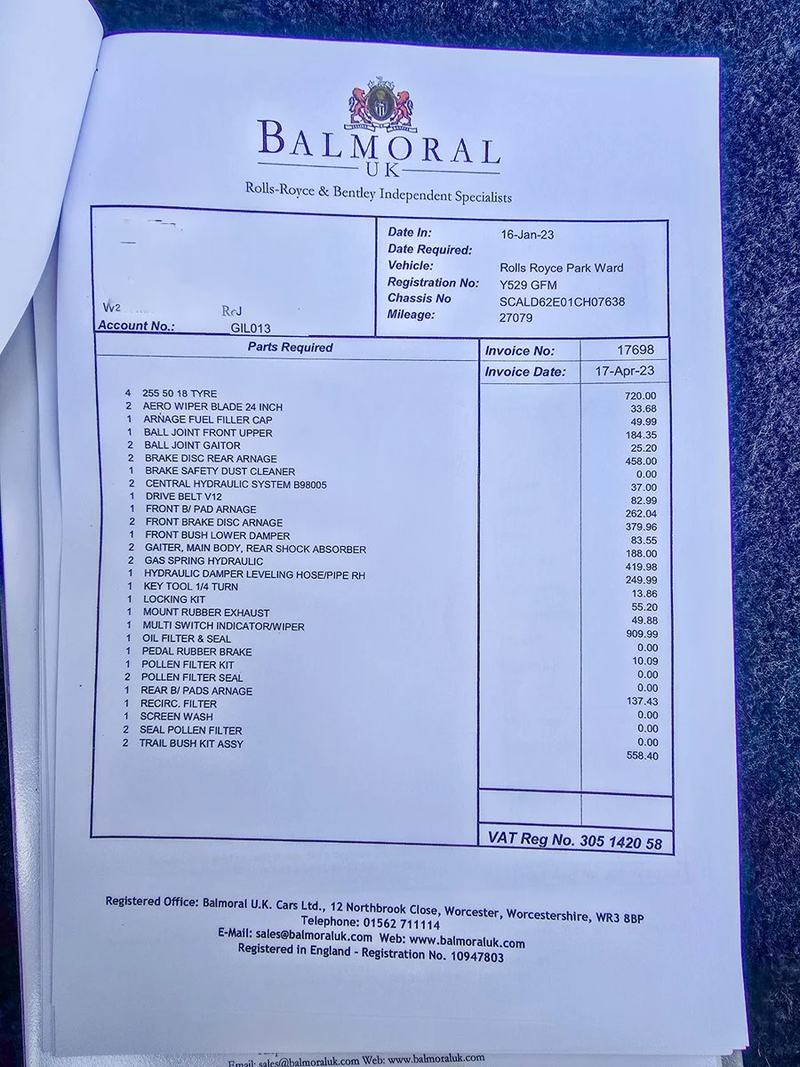 Splendidamente rifinita in blu scuro con interni in tinta, questa Park Ward ha un chilometraggio eccezionalmente basso e ha percorso meno di 28.000 miglia nelle mani di soli quattro proprietari. L'attuale proprietario l'ha aggiunta alla sua collezione tre anni fa, durante i quali l'ha affidata allo specialista del marchio Balmoral UK per la manutenzione e le migliorie periodiche. In questo periodo, ha ricevuto 22.000 sterline di interventi, tra cui nuovi davanzali, oltre a lavori ai freni e alle sospensioni.