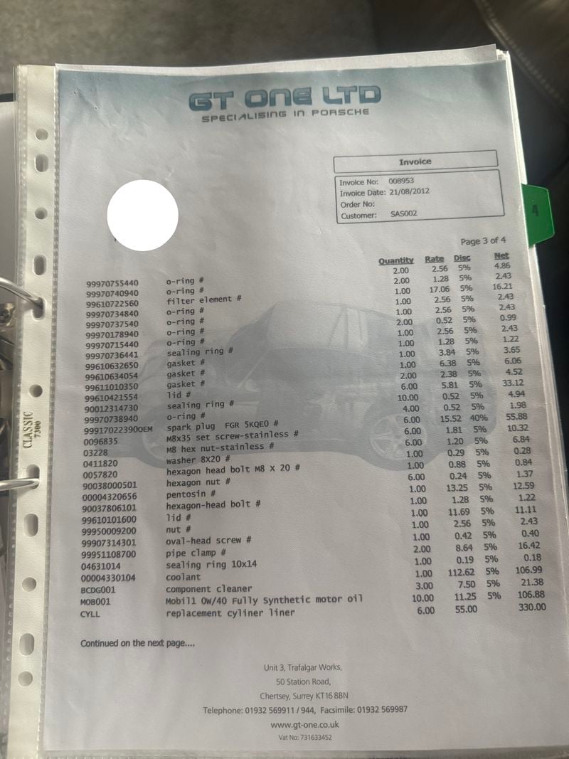 - Fatture e fotografie della lavorazione della ricostruzione del motore incluse