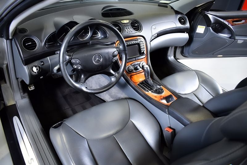 This 2004 SL500 is a particularly well-equipped example, finished in Cubanite Silver Metallic over black and anthracite leather with burred walnut wood trim. The specification is comprehensive: AMG 18" double-spoke wheels with mixed-width tyres, AMG brake system, Active Body Control suspension, COMAND navigation, Bose premium sound system, bi-xenon headlamps, heated seats and a heated windscreen washer system all feature. Having spent its life in Southern California, the car benefits from a dry-climate provenance.