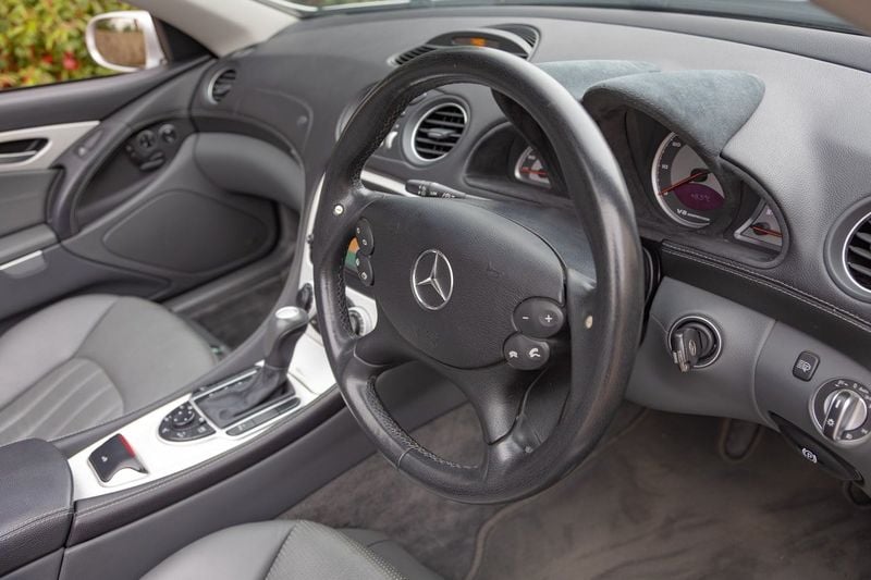 Questo SL55 del 2004 è un esempio a bassissimo chilometraggio i cui tre possessori l’hanno tenuto in modo appropriato. Tutte le manutenzioni sono state eseguite da Mercedes-Benz con l’ultimo tagliando a maggio 2024 a 34.500 miglia, meno di 1.500 miglia fa. L’attuale MOT va fino ad aprile 2026 senza avvisi. Altri lavori includono l’attenzione all’ABC delle sospensioni nel 2022. È un’auto ben equipaggiata, in Brilliant Silver con il tetto panoramico in vetro opzionale molto desiderato.