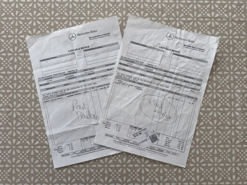 - Vari vecchi MOT e fatture come mostrato