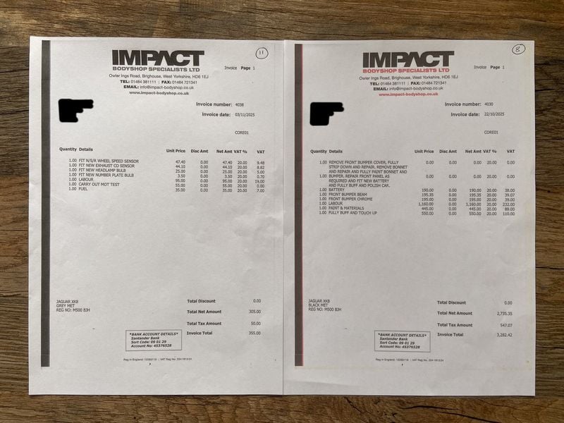 - 10/25 - £3.282 - Impact Bodyshop - riparazioni paraurti anteriore e verniciatura