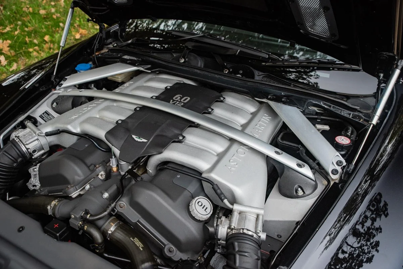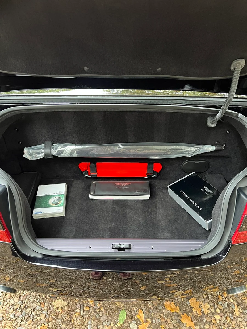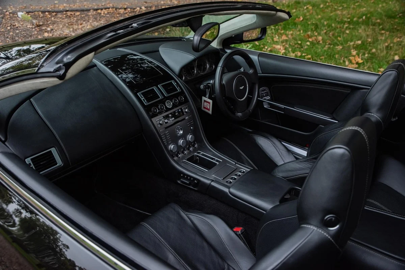 La vettura è stata ordinata come dimostratore da Grange Aston Martin, perciò presenta la desiderabile specifica ‘triplo nero’ con tetto nero, vernice Onyx Black e pelle Obsidian Black con viteria in piano black. Naturalmente è in ottime condizioni, agevolata da un recente dettaglio della vernice e dal rifacimento dei cerchi in lega.