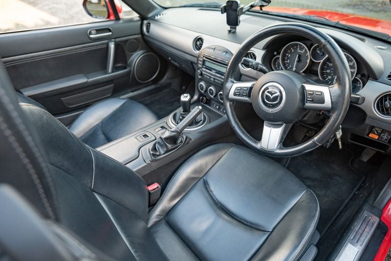 Qui abbiamo una MX-5 Sport Tech di terza generazione (NC). Il livello di allestimento Sport Tech offre funzionalità e rifiniture aggiuntive rispetto al modello standard, rendendolo una scelta desiderabile per gli appassionati che cercano un'esperienza di auto sportiva ben equipaggiata.