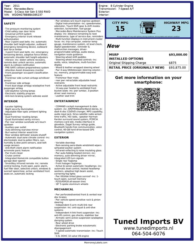 Etichetta originale della finestra e datacard Mercedes-Benz presenti