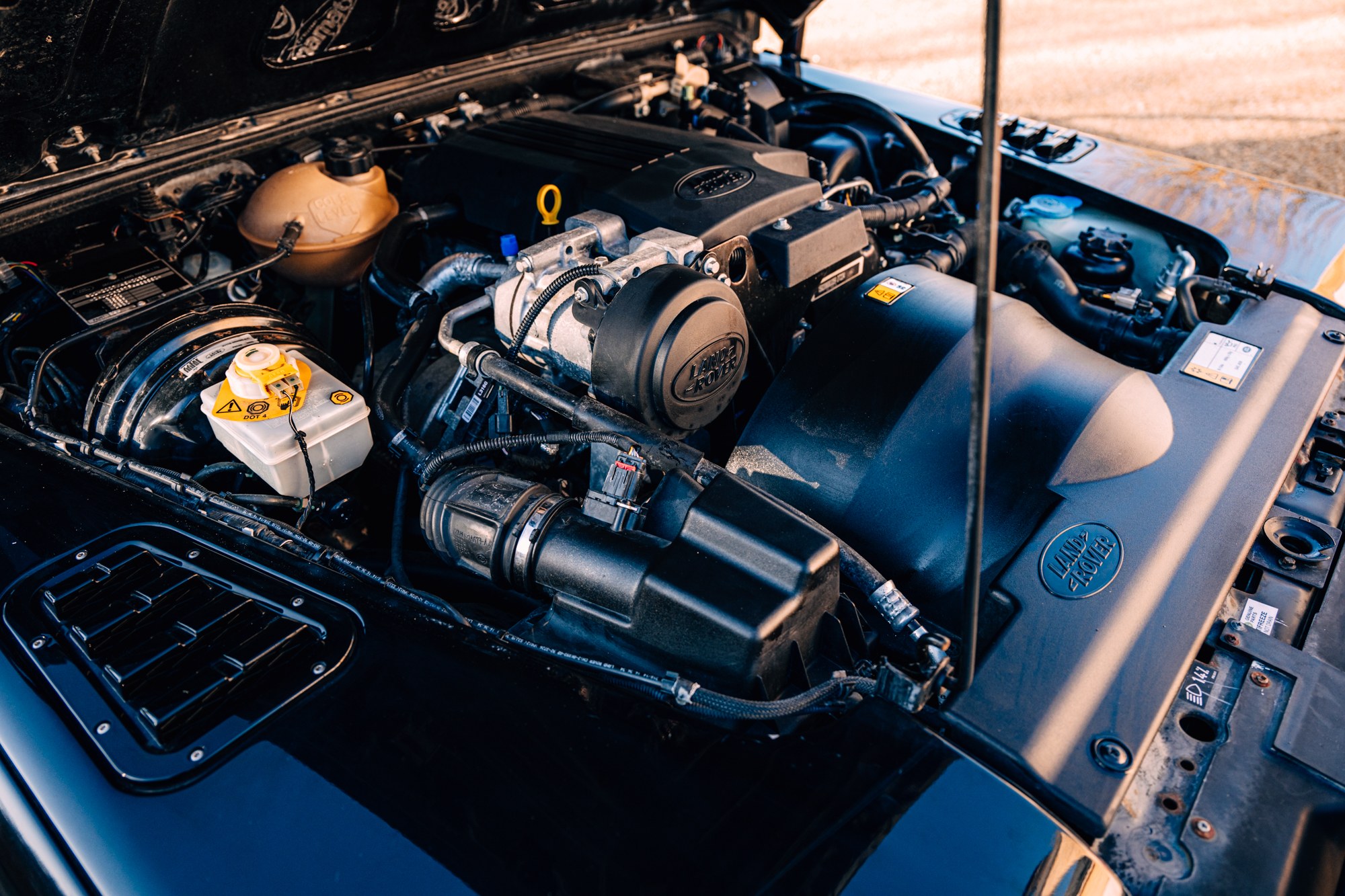Ci possono essere pochi Defender 2015 così ben presentati come questo. Le specifiche di fabbrica migliorate con vernice nera le conferiscono un aspetto adeguatamente minaccioso che replica da vicino l'estetica della Spectre. Gran parte di questa impressione è data dai pneumatici Maxxis Treps da 37 pollici e dai cerchi Beadlock in acciaio, una combinazione che conferisce a questo Defender un'atmosfera da "monster truck".