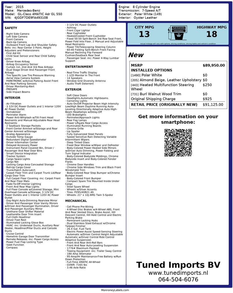 - Window sticker originale e datacard Mercedes-Benz presenti