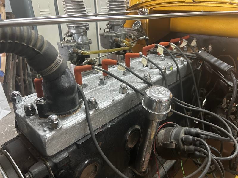 Questo Ford Tudor si distingue per la finitura in vernice metallica e per le modifiche al carrozzeria realizzate con precisione. Il veicolo mantiene molte componenti originali, inclusi coperture del cofano motore e archi delle ruote, preservando il carattere degli anni ’20 pur incorporando aggiornamenti prestazionali come il raro motore Pontiac flathead a otto cilindri in linea. A circa il 90% completo, questo hot rod offre una base solida e operativa e l’opportunità per un nuovo proprietario di aggiungere i propri tocchi personali di finitura.