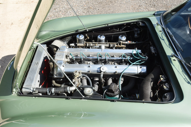 LT Classics è stata incaricata del più recente restauro della carrozzeria, che ha incluso diverse riparazioni che si sono dimostrate solide nel tempo. L’installazione dei nuovi tappeti, la riparazione dei meccanismi di alzavetro e la rifoderatura degli interni sono state successivamente effettuate da RS Williams, e grazie a loro la Aston si presenta su un set di ruote cromate sostitutive. Il tetto pieghevole sembra in ottime condizioni e il colore si abbina all’arredamento.